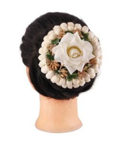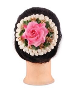 Top-quality flower juda/ hair bun for women. This Juda hair extension is made with synthetic hair, it gives a feel of real hair. This ready-to-use hair bun gives perfect volume to your own hair. It is a long-lasting hair attachment.