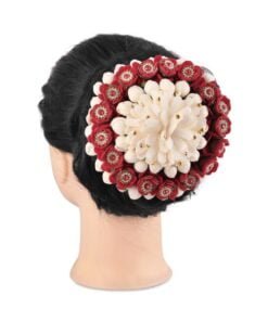 Artificial White And Red Flower Juda Bun With Mogra