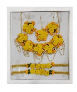 FLOWER JEWELLERY’S ARE GOOD QUALITY AND LIGHTWEIGHT HANDMADE JEWELLERY SET FOR GIRLS/ BRIDALS/ HALDI CEREMONY/ MEHENDI AND BABY SHOWER. THIS JEWEL IS EASY TO WEAR AND CAN FIT ANYONE DUE TO ITS ADJUSTABLE SIZE. THESE ARE MADE FROM PREMIUM QUALITY MATERIAL