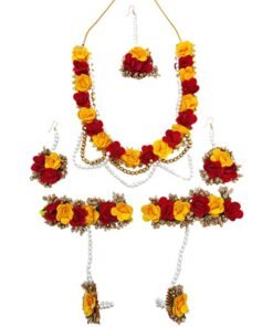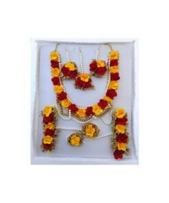 FLOWER JEWELLERY’S ARE GOOD QUALITY AND LIGHTWEIGHT HANDMADE JEWELLERY SET FOR GIRLS/ BRIDALS/ HALDI CEREMONY/ MEHENDI AND BABY SHOWER. THIS JEWEL IS EASY TO WEAR AND CAN FIT ANYONE DUE TO ITS ADJUSTABLE SIZE. THESE ARE MADE FROM PREMIUM QUALITY MATERIAL