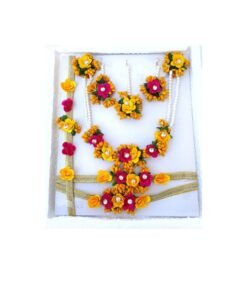 FLOWER JEWELLERY’S ARE GOOD QUALITY AND LIGHTWEIGHT HANDMADE JEWELLERY SET FOR GIRLS/ BRIDALS/ HALDI CEREMONY/ MEHENDI AND BABY SHOWER. THIS JEWEL IS EASY TO WEAR AND CAN FIT ANYONE DUE TO ITS ADJUSTABLE SIZE. THESE ARE MADE FROM PREMIUM QUALITY MATERIAL