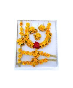FLOWER JEWELLERY’S ARE GOOD QUALITY AND LIGHTWEIGHT HANDMADE JEWELLERY SET FOR GIRLS/ BRIDALS/ HALDI CEREMONY/ MEHENDI AND BABY SHOWER. THIS JEWEL IS EASY TO WEAR AND CAN FIT ANYONE DUE TO ITS ADJUSTABLE SIZE. THESE ARE MADE FROM PREMIUM QUALITY MATERIAL
