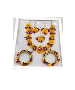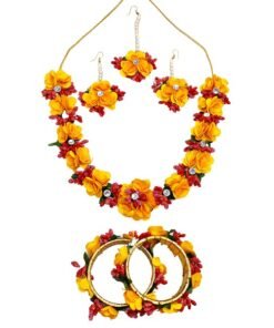 FLOWER JEWELLERY’S ARE GOOD QUALITY AND LIGHTWEIGHT HANDMADE JEWELLERY SET FOR GIRLS/ BRIDALS/ HALDI CEREMONY/ MEHENDI AND BABY SHOWER. THIS JEWEL IS EASY TO WEAR AND CAN FIT ANYONE DUE TO ITS ADJUSTABLE SIZE. THESE ARE MADE FROM PREMIUM QUALITY MATERIAL, THAT ASSURES TO REMAIN IN ITS ORIGINAL GLORY EVEN AFTER YEARS OF USAGE AND SKIN FRIENDLY. THESE ARE IDEAL FOR GIFTING PURPOSE.