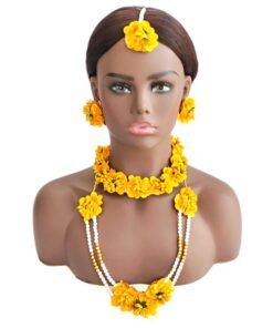 FLOWER JEWELLERY’S ARE GOOD QUALITY AND LIGHTWEIGHT HANDMADE JEWELLERY SET FOR GIRLS/ BRIDALS/ HALDI CEREMONY/ MEHENDI AND BABY SHOWER. THIS JEWEL IS EASY TO WEAR AND CAN FIT ANYONE DUE TO ITS ADJUSTABLE SIZE. THESE ARE MADE FROM PREMIUM QUALITY MATERIAL