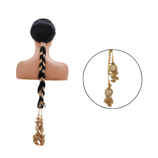 Punjabi Style Parandi Hair Accessories specially made For Girls & Women of all ages. This is a beautifully designed handcrafted parandi with extraordinary craftsmanship that adds extra charm to your personality.This hair parandi with golden beads gives you both traditional and westernised look and also increases the length of hair.Females can wrap the paranda on hair in a way that it will give them a fusion look too that can go with a Punjabi or an indo western outfit.This way it works as a 2 in 1 paranda. Look Gorgeous with this stylish and exclusive Parandi also called as Paranda as It is designed by skilled Indian Artisans to bring out an extraordinarily royal Parandi Hair Piece. Perfect to wear on special occasions, such as weddings, parties, and festivals to match the fashion level with the tradition
